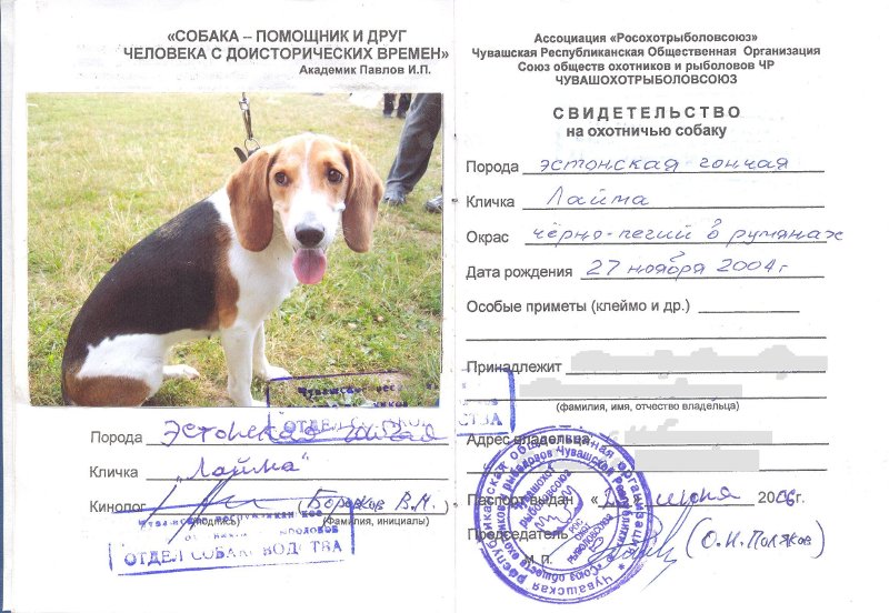 Порода: Эстонская гончая, Кличка: Лайма, Пол: