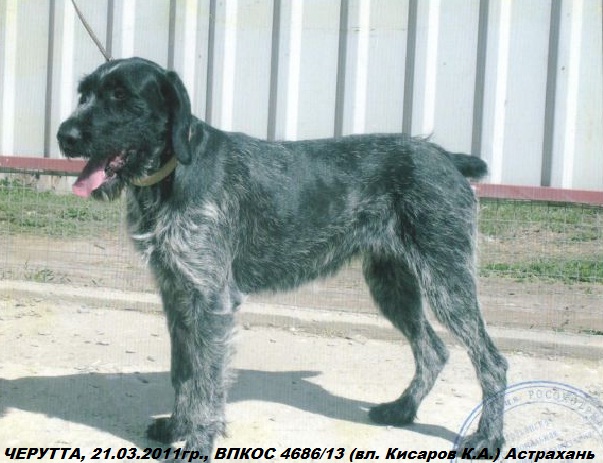 /CINDY v.d. WEIGLOHE, Германия DPSZ, VDH, ZB 183172, Коричнево-пегий, A.H. ZR 239/00 g(8)/sg(10) HD-frei VJP 70 HZP 227 VGP - ML Auenheim-PP, на 69 Hegewald 2002г. в Wesel, 14 место среди 212 собак, 236 баллов. |