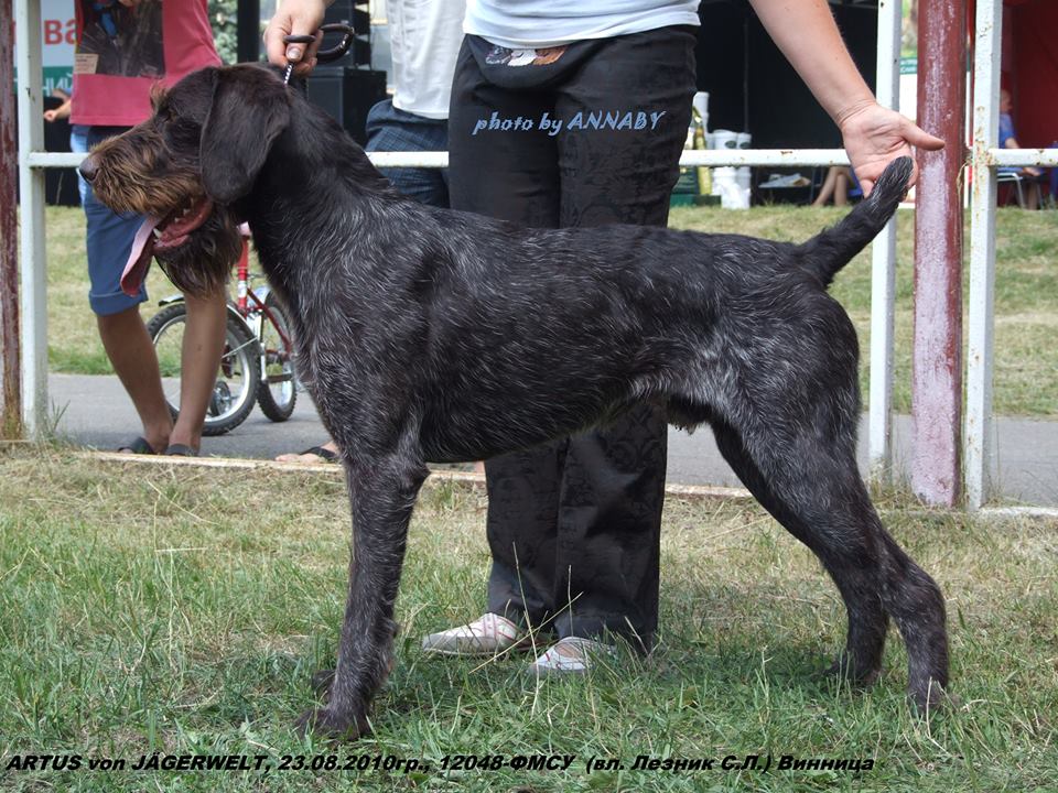 / QUILLA vom STADTGRABEN, Германия DPSZ, VDH, ZB 178604, Коричнево-пегий, A.H. 51492 ZR 096/99 sg/sg HD-frei VJP 77 HZP 230 VGP I/332TF ML Saarforst-DK --- 67 HEGEWALD 2000г. в Moers ПОБЕДИТЕЛЬ, первое место среди 181 собаки. |