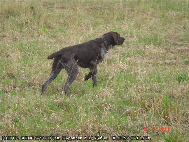 ВАЛЬДА,, Св-во на охот.собаку РФ, М-727/жл, Коричневый в седине, с пятнами или без, Березовский В.А.