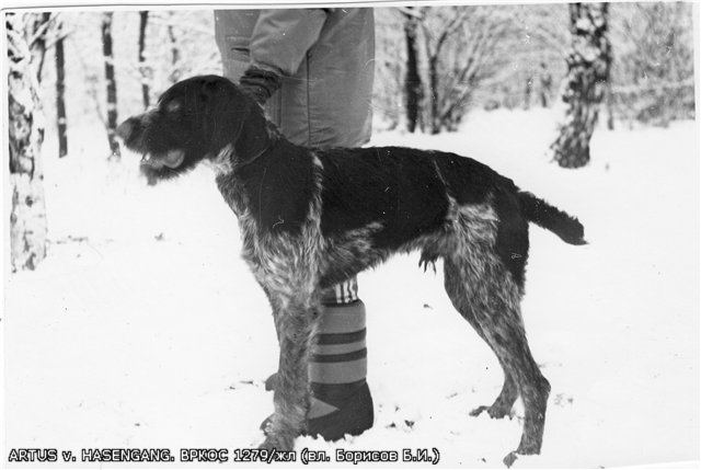 Доп. информация: \"ч. ARTUS v. HASENGANG ввозной из Австрии кобель. К середине 80-х годов сформировалась его генеалогическая линия. Со временем эту линию по качественному и количественному составу удалось довести до племенной. Линия ARTUSA имела определяющее значение не только для Московского региона, но и для всего бывшего Союза.\" Королев С.С. \"Собака была привезена из Австрии после программы первого года обучения в основном с притравкой по зверю. Для испытаний по существующим правилам в Союзе, его пришлось отдать в натаску Солганику В.И., который добился от него достаточного послушания и правильной постановки поиска. На многочисленных полевых выступлениях ARTUS показывал разные по качеству работы и среди них прекрасные длинночутые и верные.\" Лопатин-Бремзен А.С. Потомки: ч.РЭЙ(1983/92, Запорин К.А.), РЕДА(2532/жл, Нейкирх Р.), ч.АЙНА(1728/жл, Рубцов А.) и др. Дипломы: Д1-2шт., Д2-9шт.